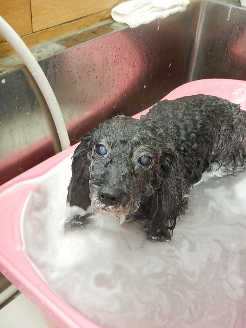トリミング中もずっとお外を眺めているけなげなパッチ君でした~emoji