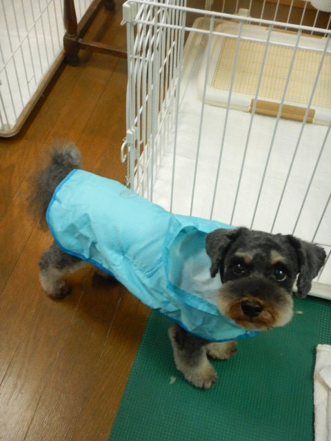 仕方なさそうにレインコートを着させられてのお散歩でしたがemoji