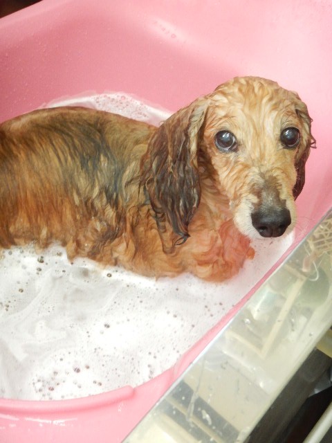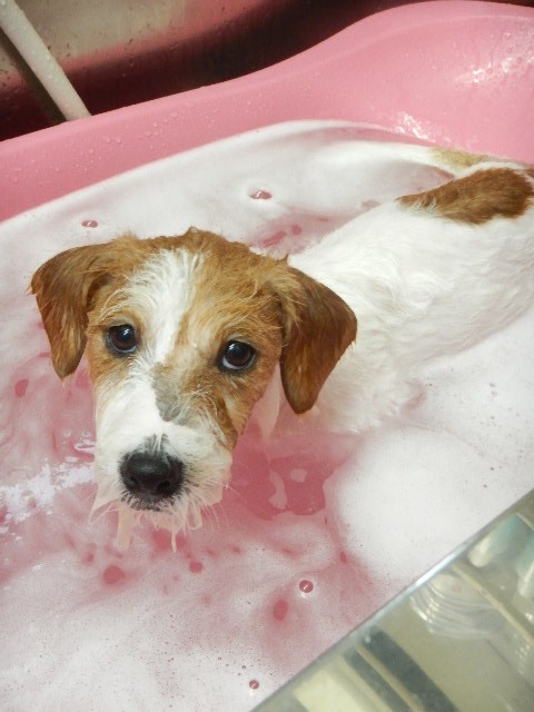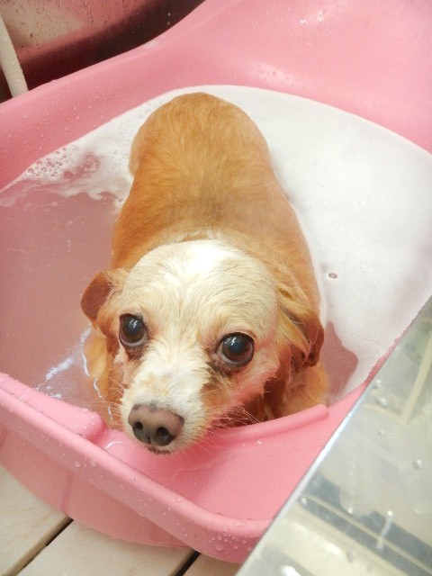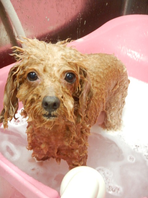 きょうは、初めてのシャンプーとのことで緊張したかな??