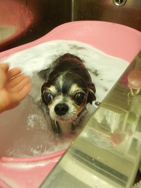 雨の中元気にご来店くださいました、チワワのちゃお君emojiですemoji