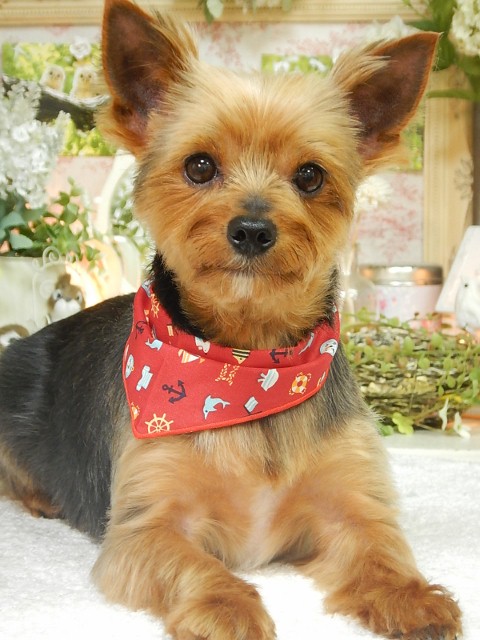 真っ赤なバンダナがリードとおそろいのようで