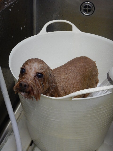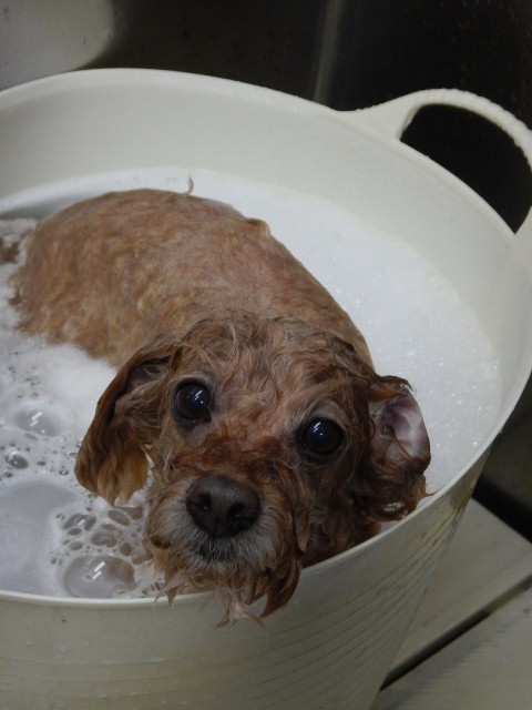 ドル君は、のりちゃんがカットしている間、暖かい場所を選んでくつろいでいましたemoji