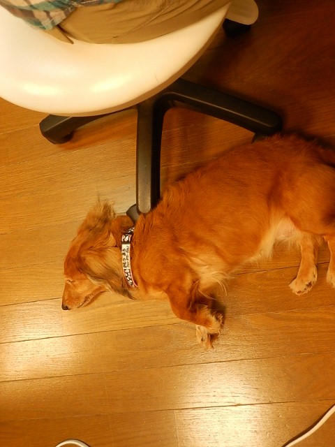 椅子の下で寝ちゃっているときは起こさないようにそ~っとね♪emoji