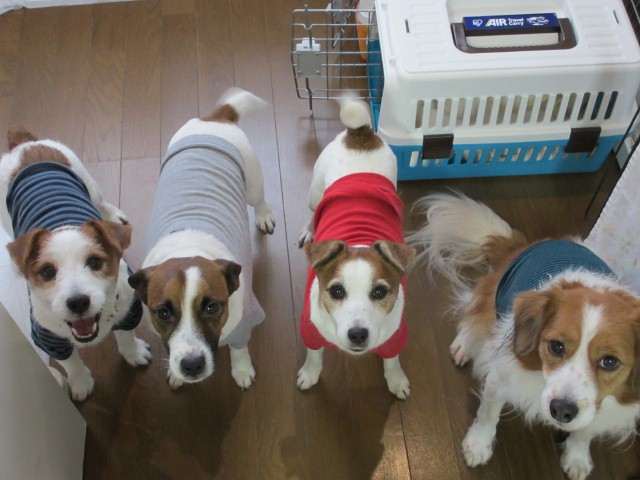 ジャックラッセルとコーイケルホンディエの仲良しファミリーですemoji