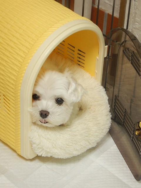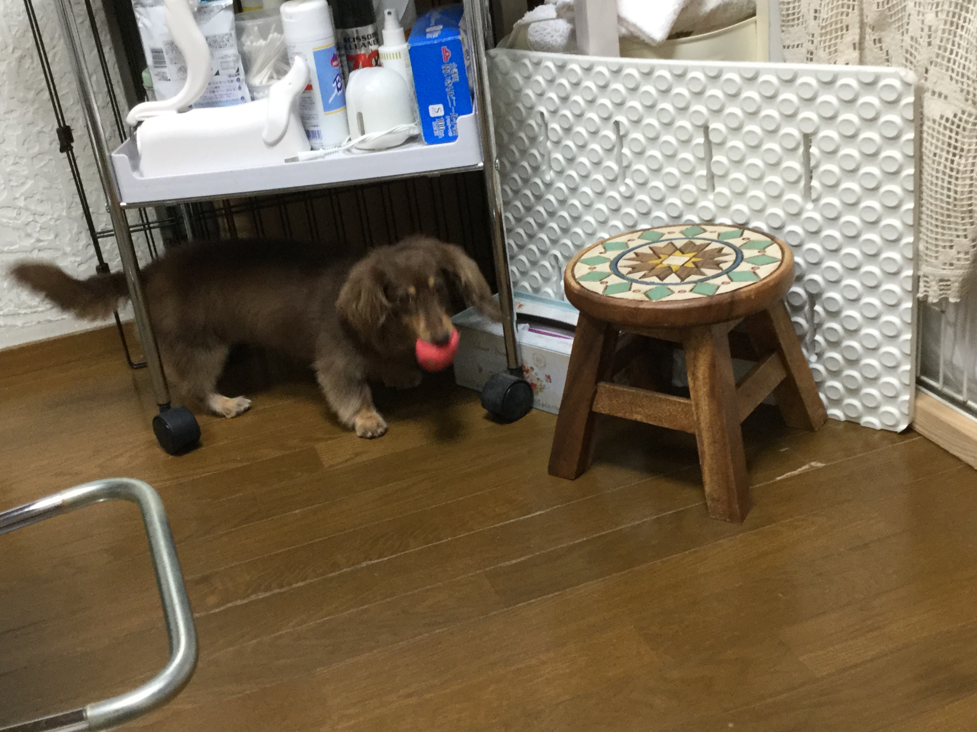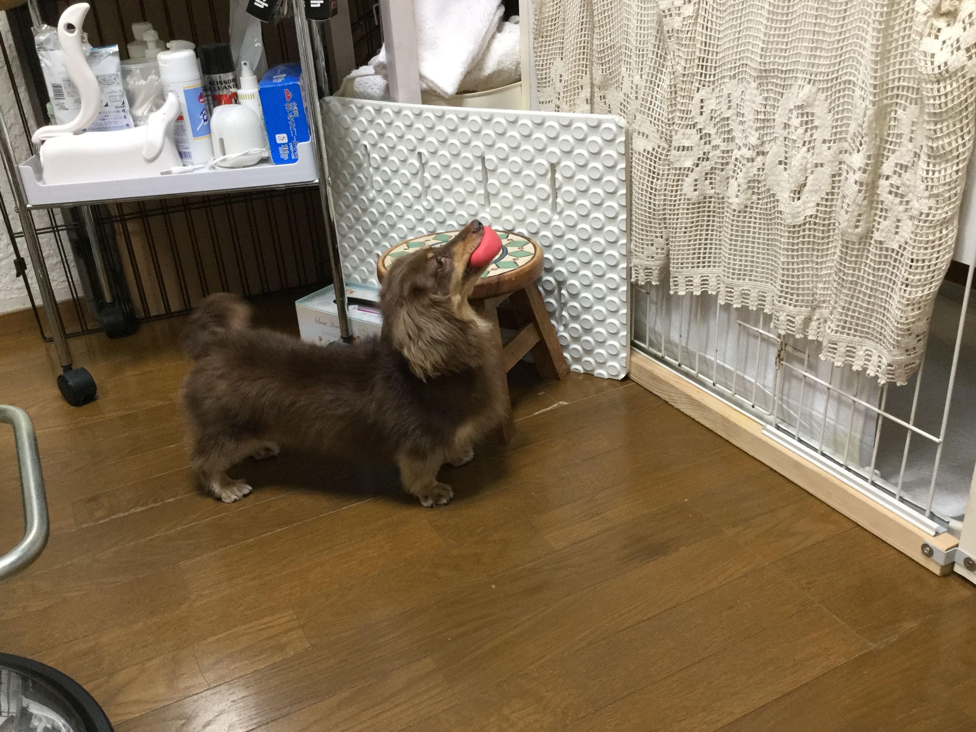トリミングに来るお客様たちを観察してくつろいでいるハナちゃん