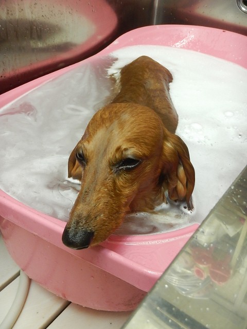率先してピンクの桶に入ろうとしていましたemoji